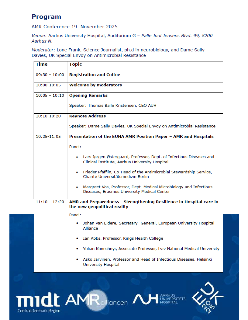 Go to live streaming: Live from Aarhus University Hospital on Antimicrobial Resistance