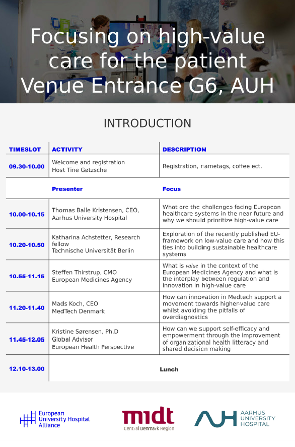 Venue: Aarhus University Hospital, Auditorium G – Palle Juul Jensens Blvd. 99, 8200 Aarhus N.
