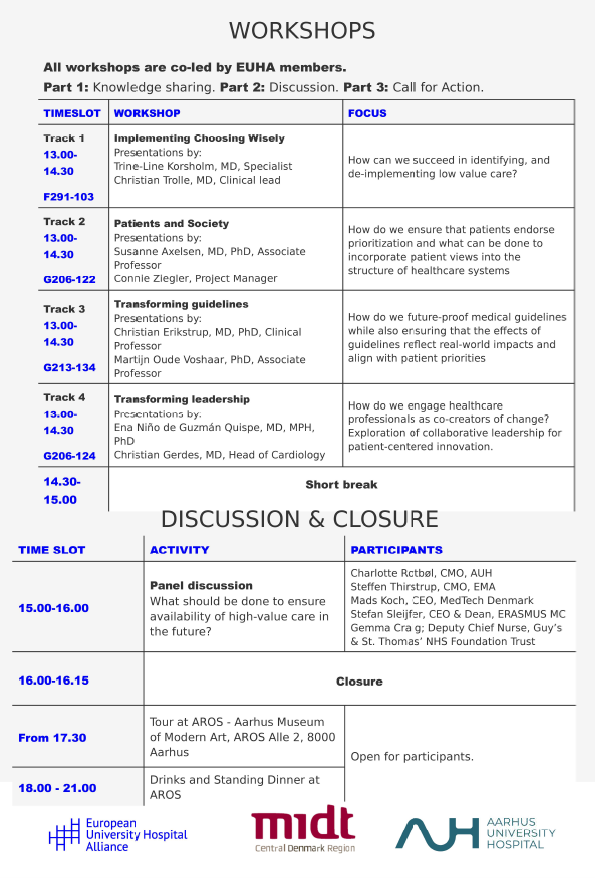 In case you missed the invitation from the EUHA Secretariat or AUH, please contact Tenna Korsbek Andreasen.